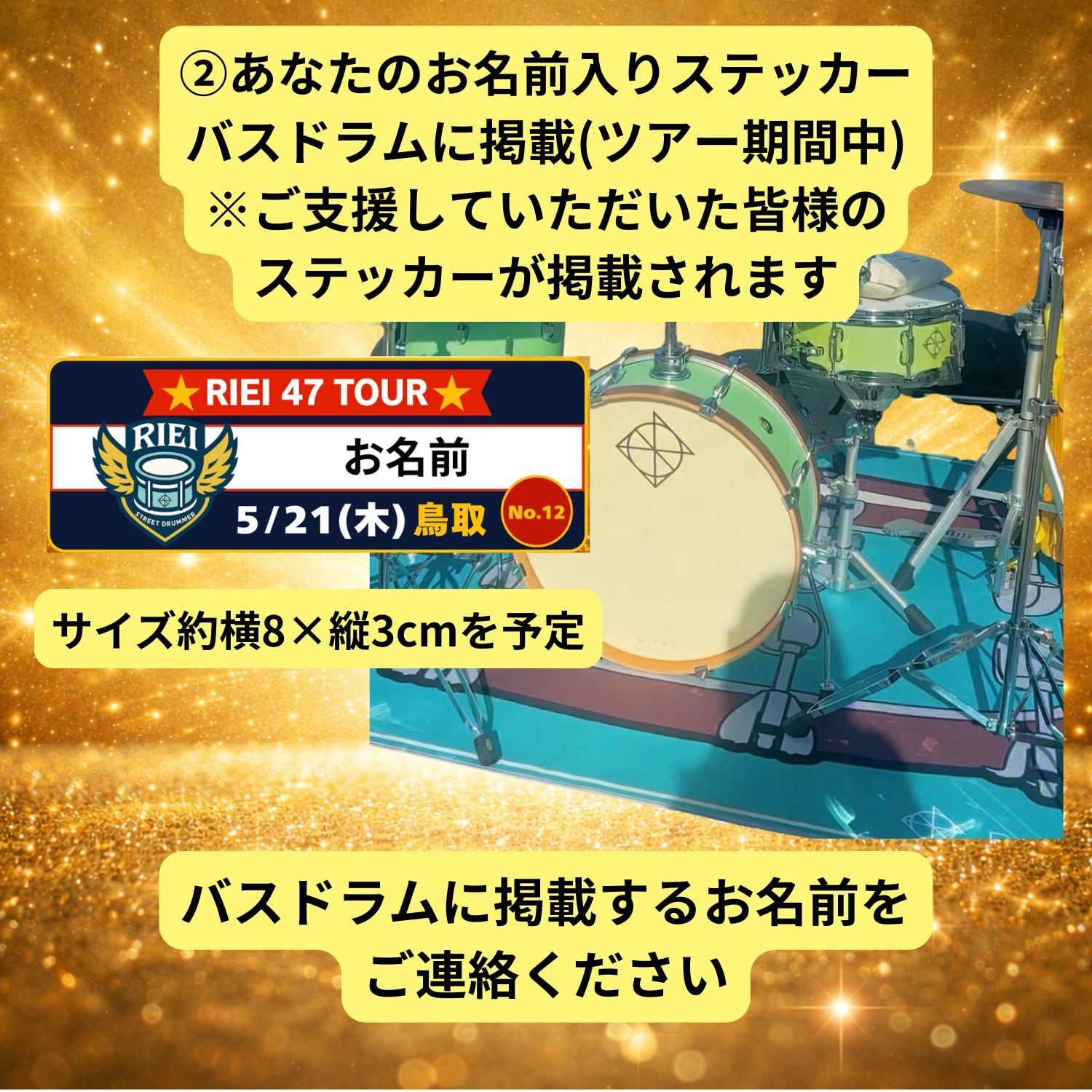 ②あなたのお名前入りステッカー(バスドラムに掲載)